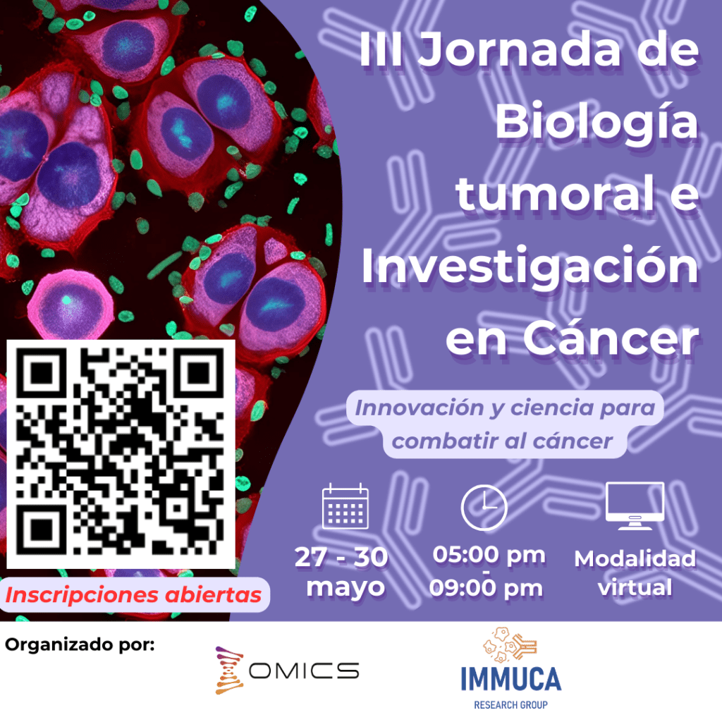 Del 27 al 30 de mayo, acompáñanos en la III Jornada en Biología Tumoral e Investigación en Cáncer (evento virtual- https://lnkd.in/eangwKvk).