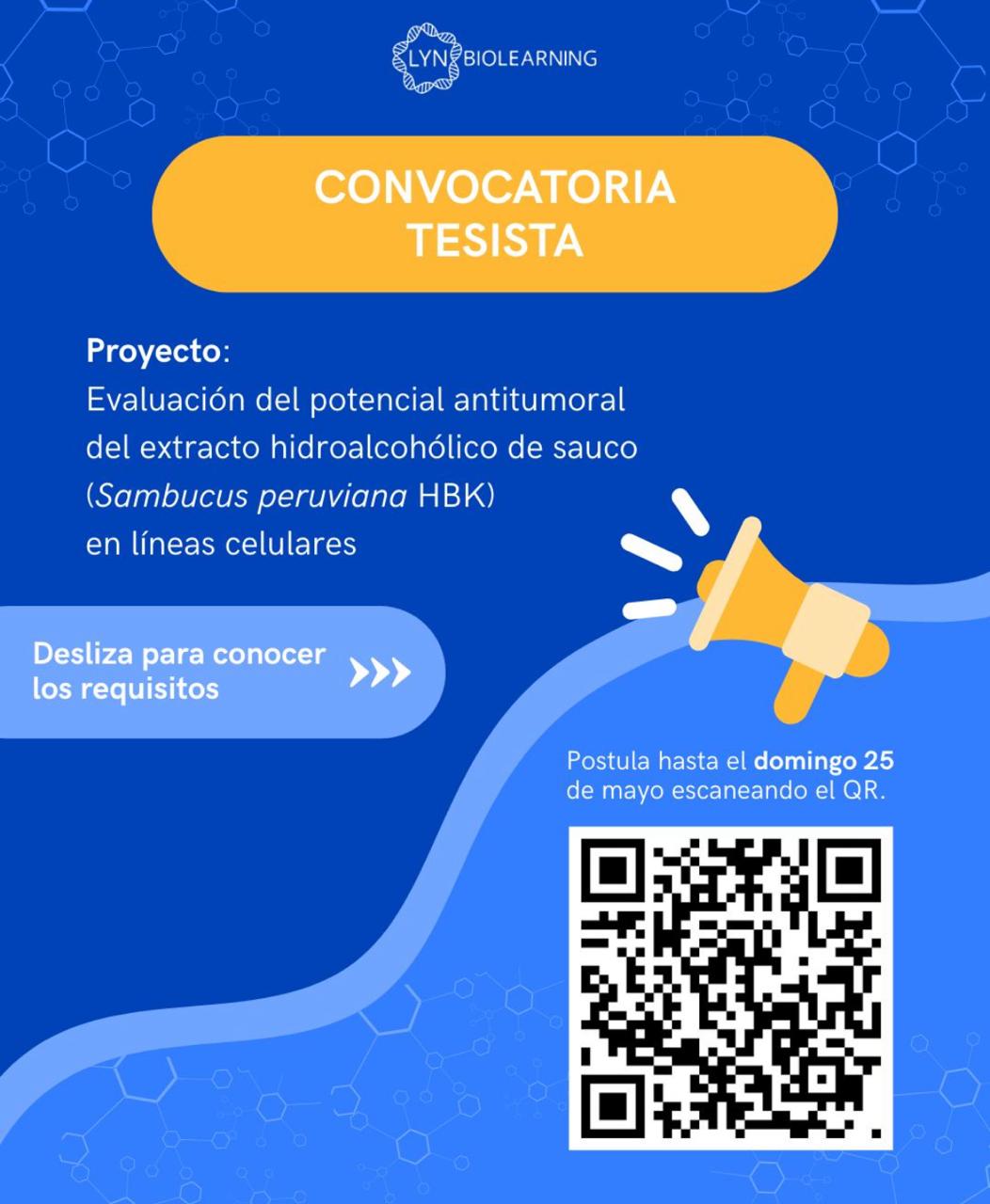 • Tesista: Ser estudiante de últimos ciclos o egresado de una carrera de Biociencias o Ciencias de la Salud.